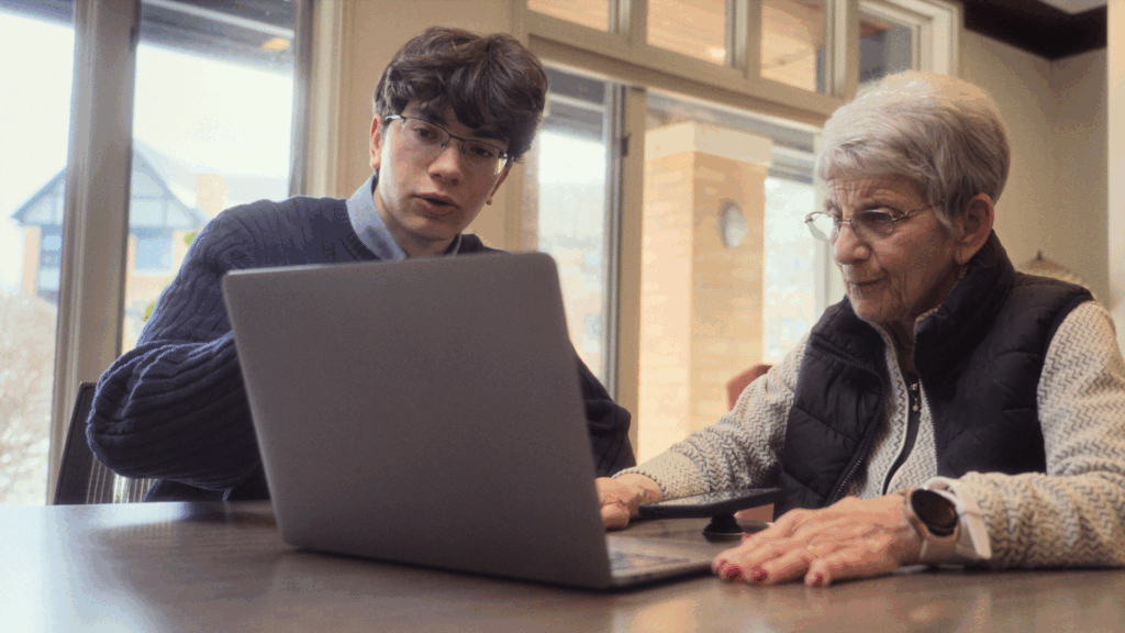 The collaboration paired students with older adults to provide support while gathering data through interviews and interaction. Data revealed that 85 percent of older-adult tech needs involve troubleshooting and inquiry, and a high need for personal guidance.