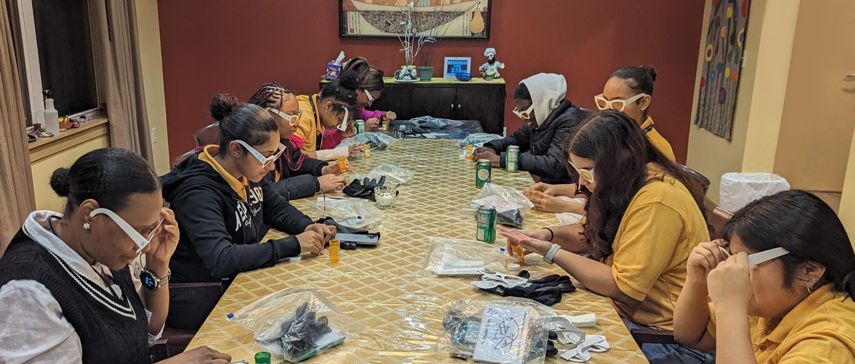 Students sort “medications” (candies) by color while wearing color blind glasses to demonstrate how easy it is to confuse colors while managing one’s own medications.